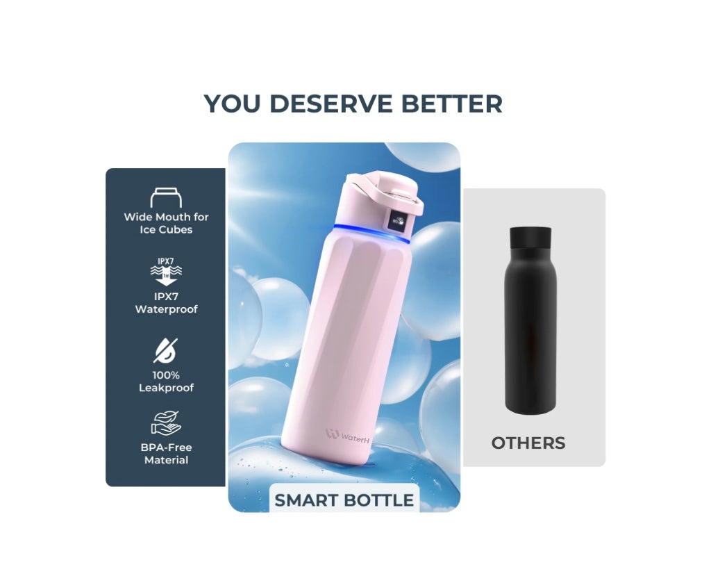 Stay refreshed and consistent every day with the Waterh Boost Smart Water Bottle with Hydration Tracker — the perfect blend of technology, design, and wellness.